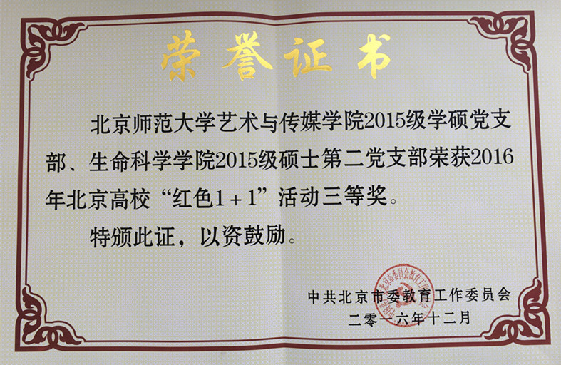 新学期伊始,在2017年北京高校宣传工作会议上,必威BETWAY西汉姆联频频收到捷报:细胞所博士生孔菲同学所在的学三楼618宿舍在2016年北京高校优秀学生基层组织创建评选活动中,获得“北京高校示范学生基层组织(示范)”荣誉称号;2015级硕士第二党支部与艺术与传媒学院2015级学硕党支部共同组织开展的“深入农村教育——半截塔村支教行动”荣获2016年北京高校“红色1+1”活动三等奖;2014级硕士第一党支部开展的“科学生活•健康你我”活动荣获2016年北京高校“红色1+1”活动优秀奖。这是我院研究生党支部第一次在北京高校“红色1+1”评比中获得荣誉。