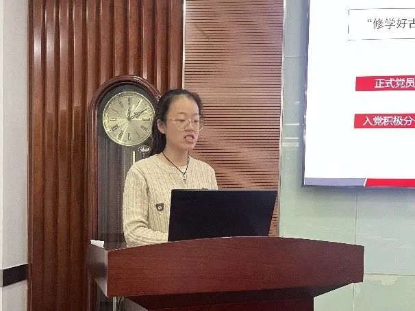 接下来,各学生党支部书记相继进行述职汇报,分别从支部的组织建设、制度建设、理论学习以及特色活动等方面进行详细阐述。重点介绍了党纪学习教育、二十届三中全会精神、全国教育大会精神的学习情况以及创新的学习形式。同时,各支部也总结了目前工作中遇到的问题并提出相应的改进措施,梳理了支部工作的特色做法以及未来发展方向。