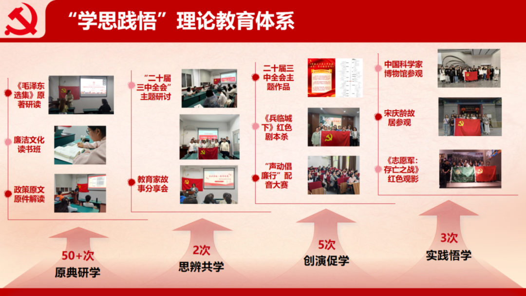 本学年累计开展原著导读 50 余次,组织研讨思辨 2 次,举办创演活动 5 次,实践学习 3 次,有效提升了支部成员的理论素养。