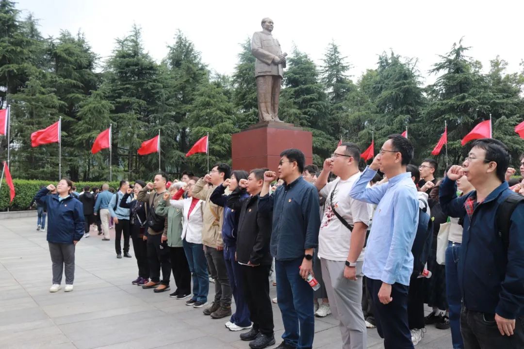 10月19日上午,全体师生赴湖南韶山。在毛泽东铜像前,敬献花篮并重温入党誓词。铿锵有力的誓词回荡在毛泽东广场,短短十二句,却句句千钧,激励着师生始终坚定入党初心使命,牢记共产党员的责任与义务,为共产主义事业奋斗终身。