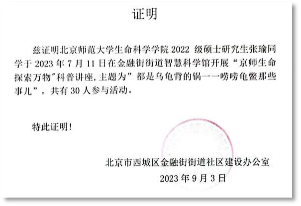 支部与金融街街道结对共建,专项制作科普课程3门,于2023年暑期开展科普讲座,先后为社区60余位青少年科普龟鳖生存现状,激发动物保护的青少年力量;讲述濒危动物生活习性,讨论保护动物的正确做法;围绕“为什么生病会发烧”等趣味话题,开展人体知识科普讲堂。科普课程不仅拓宽青少年视野,更为国家科研人才队伍建设储备新生力量。