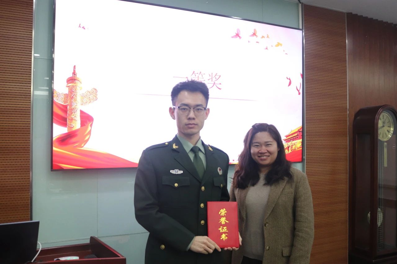 笃行党支部贾康宁同学以自己的个人经历为切入点,讲述了自己参军入伍、参加庆祝中国共产党成立100周年大型情景史诗《伟大征程》等重大活动的收获与感悟,同时揆诸当下,点明了自己作为新时代北师学子应当“军心不忘,青春向党”的主题。