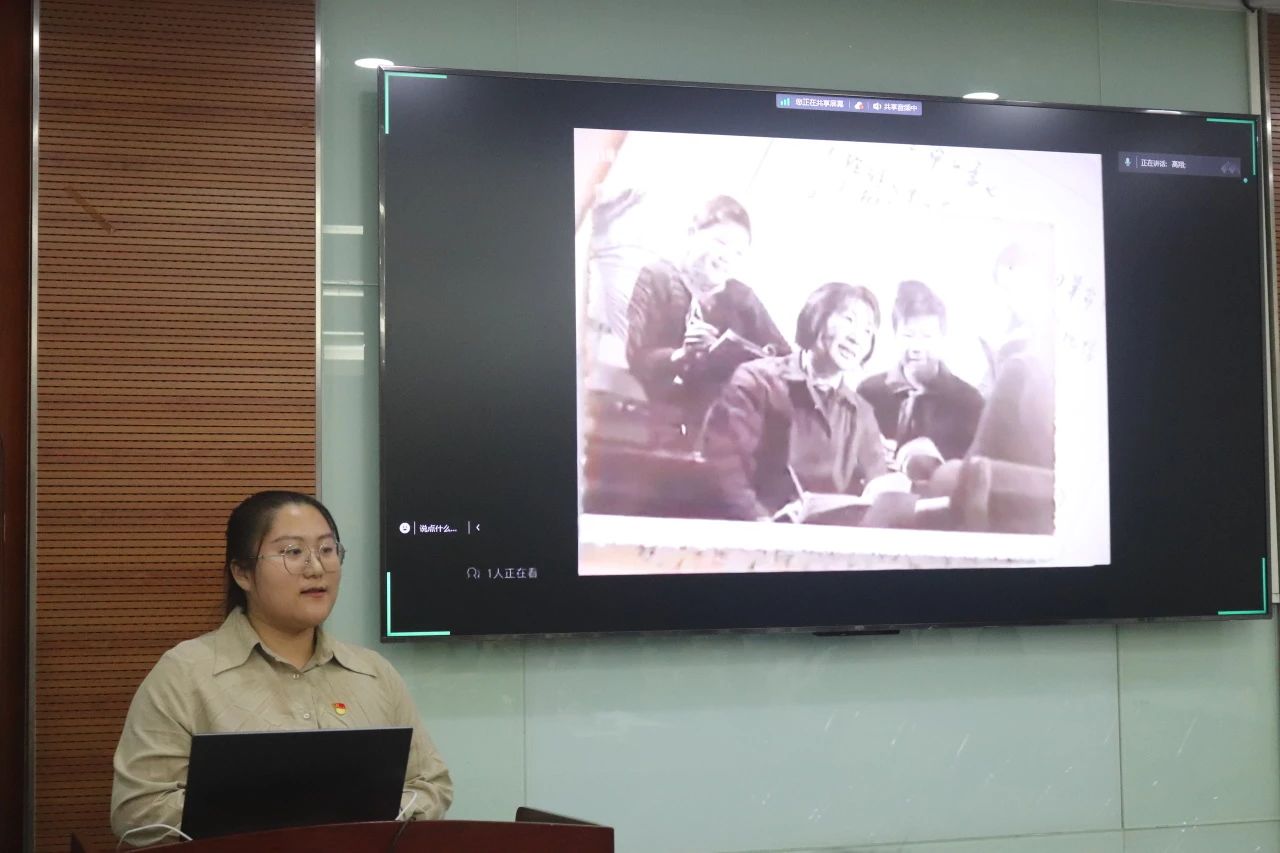 2023级博士党支部夏兰同学以“红旗渠精神”为主题,和以红旗渠的修建过程和红旗渠精神的具体内涵为内容进行讲解。其中,还引入了多位红旗渠的建渠英雄的具体事例来突出红旗渠精神,解析红旗渠精神的内涵。
