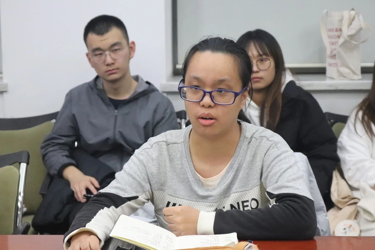 励学党支部李旭阳同学从于漪老师的生平事迹入手讲解,在故事中点明了于漪老师的教育理念、突出了她对教育事业的贡献、同时呼吁北师新时代学子学习这位新时代的大先生的教育理念和精神。