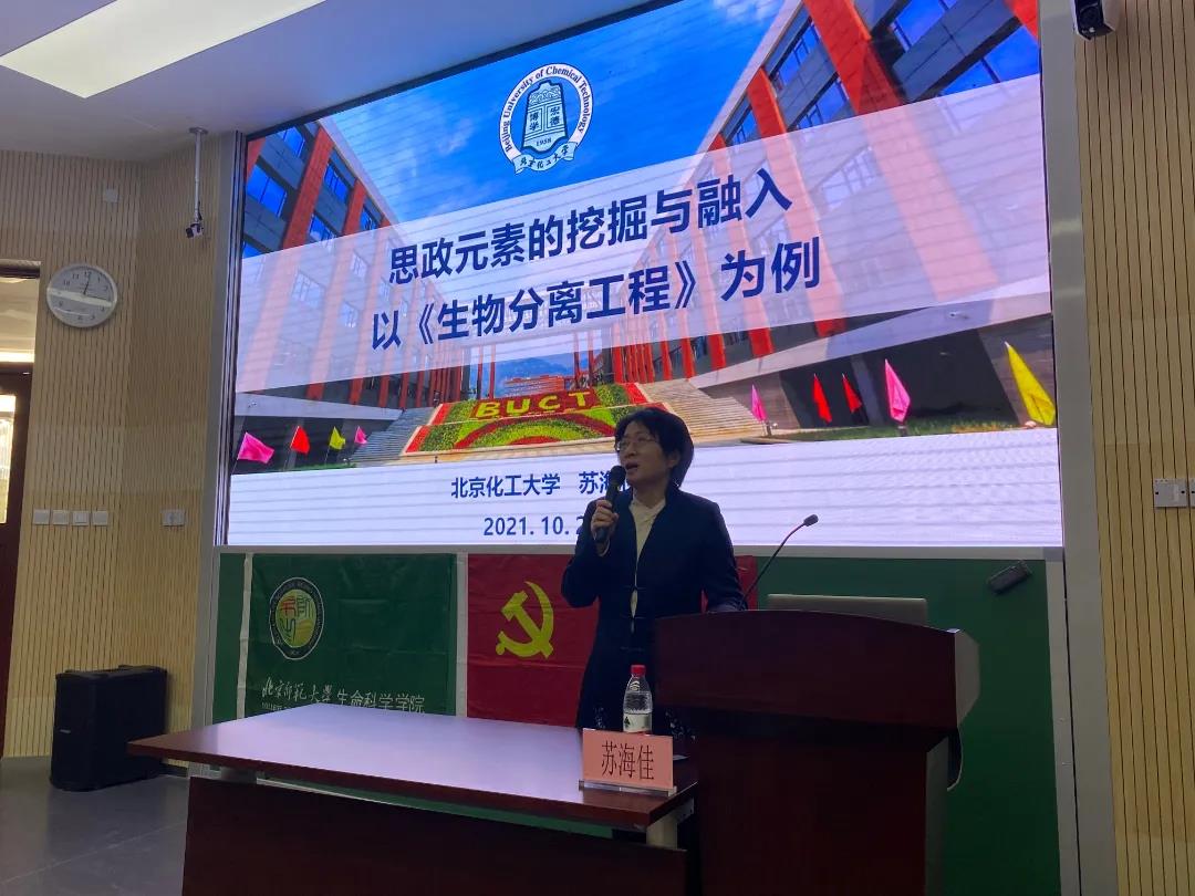 讲座伊始,苏海佳教授首先强调了思政教育在教学中的重要性,然后从如何理解课程思政、“五位一体”课程思政及建设成效、《生化分离工程》课程思政教学实践、课程思政建设的思考与体会共四个部分展开。