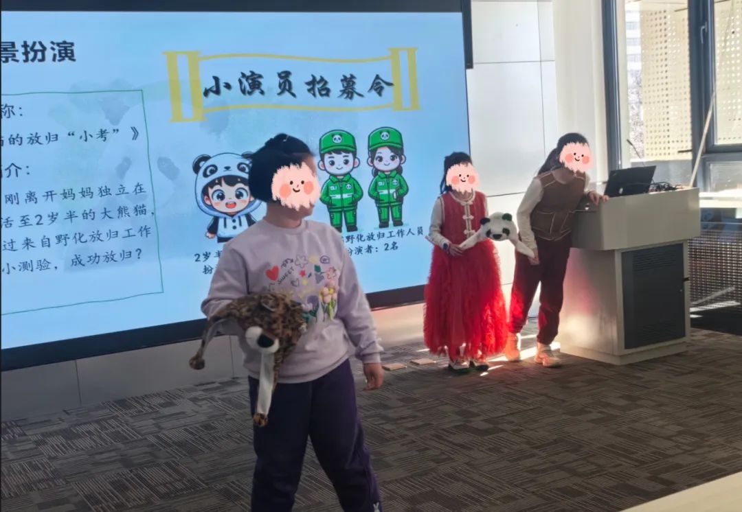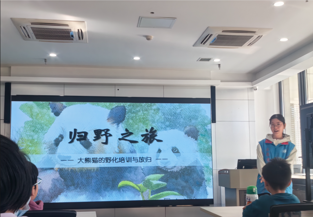 鸟类繁殖描绘生命之美,归野之旅讲述动物保护。在《鸟类繁殖季:一场生命交响乐》中,洪梓涵同志结合自身野外工作经历,以城市常见鸟类白头鹎为例,讲述鸟类繁殖从求偶、筑巢、产卵、孵卵到育雏的全过程,还带去了鸟类标本与鸟巢标本进行展示,为小朋友们带来别开生面的鸟类学课堂。在《归野之旅》的课堂里,刘子琦和杨小雨同志为同学们介绍“国宝”大熊猫野化放归需要面对的重重挑战,并通过情景扮演的活动,让同学们切身体会圈养大熊猫野化放归的不易,在同学们心中种下热爱自然、保护自然的种子。