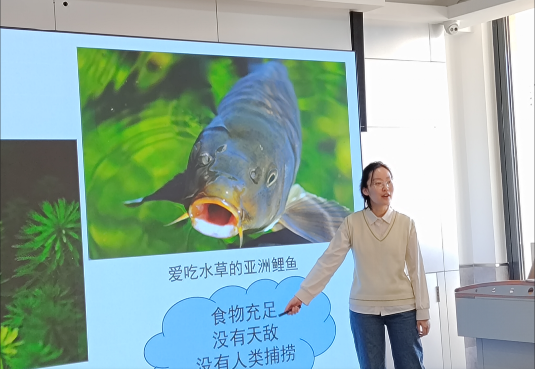 什么是“入侵物种”?为什么有些物种来到另一个栖息地就“性情大变”?黄一航同志带来《关于入侵物种的“那些事儿”》,以亚洲鲤鱼和葛藤为例——原本用于治理水草引入密西西比河的亚洲鲤鱼却成为了跳出水面攻击人类的“水中暴君”,产于日本的葛藤从美国的“水土救星”变成遍布农田、覆盖建筑物的“野草”,这都是源于入侵物种失去天敌故而能够在资源充足的环境肆意疯长。老师由浅入深、由小见大,警示小朋友们入侵物种的危害性。