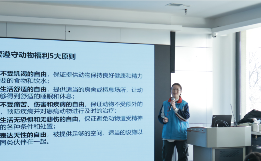 在人与动物和谐共存的千百年来,动物逐渐成为了我们的伙伴和帮手,我们早已离不开伴侣动物和农场动物的陪伴和帮助。李晓冉同志带来的《我爱你,亲爱的伴侣动物》分享了家猫、家狗、观赏鸟类、观赏鱼类等常见伴侣动物的驯化过程,让小朋友们重新认识我们身边的宠物伴侣,并学会如何爱护和尊重它们。李青宸同志带来的《农场动物也想开启幸福生活》谈到与我们的生产生活息息相关的畜牧业动物,它们的动物福利也需要被看到。小朋友们在两位老师的课堂中对我们身边的动物们有了更加全面的认识,并在心中树立了爱护伴侣动物和农场动物的观念。