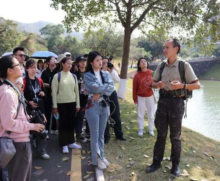 首先由王宁老师和刘健老师带领大家在红树林保护区外进行观鸟活动,并沿路介绍当地常见的林鸟、水鸟及识别特征,学员们通过望远镜观察鸟类的曼妙身姿与栖息环境。