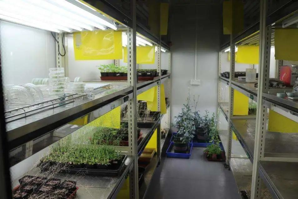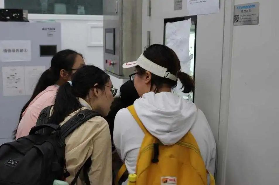 紧接着,两位老师带大家走进人工气候实验室,并谈到人工气候实验室是通过人工模拟外界的自然生长环境,研究人员能够在室内开展植物的生长变化、生长周期等相关研究。