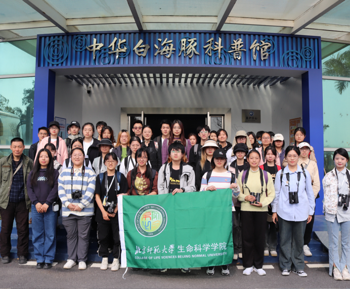 大家首先来到中华白海豚科普馆,负责人周瑞春老师结合生物标本和图文介绍,为学员们依次讲解了鲸豚家族演化史及其生命周期,接着进一步介绍粤港澳大湾区海洋生物多样性,并结合当地实例阐述如何开展海洋动物保护和救援工作。通过周老师的讲解,同学们进一步了解了海豚的生活习性,并明确了海豚在维持海洋生态系统功能中起到的重要作用。