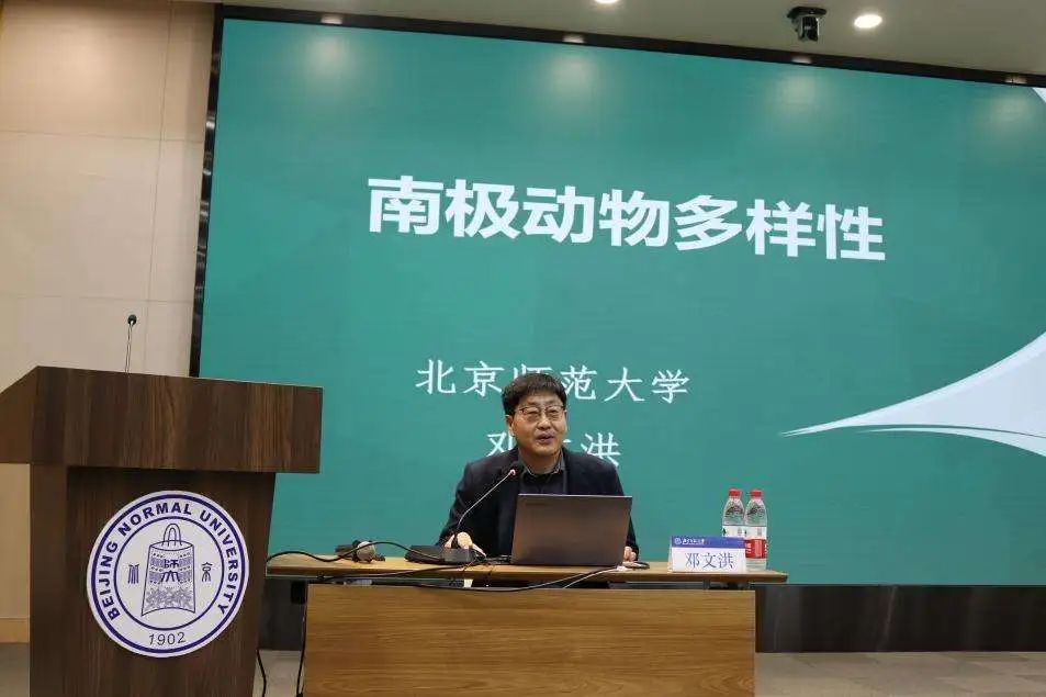 由必威BETWAY西汉姆联邓文洪教授带来《南极动物多样性》主题讲座。邓老师具有丰富的南极科考经验,首先介绍了南极地区的地理概况以及我国设立南极科考站的历程,强调我国在维护海洋权益以及保护海域生物多样性方面的战略思维。并从自身多次科考经历出发,带领大家感受惊险的科考经历,讲述南极极具魅力的生物故事。