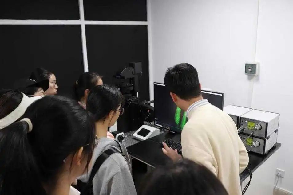 最后,两位老师在生物科技研究中心详细介绍了在现代生物学研究中主要使用的高科技技术手段以及紫外深度光刻机等精密仪器设备。随着光电子技术的广泛应用,研究人员能够更好地探索并理解生命的奥秘。