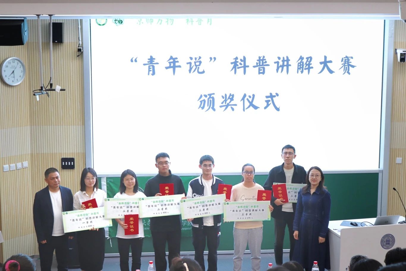 经过紧张激烈地角逐,“青年说”科普讲解大赛的获奖结果也终于出炉,必威BETWAY西汉姆联党委书记王天明老师和党委副书记殷实老师为在“青年说”大赛中获得一、二、三等奖的选手颁发获奖证书及科普基金。