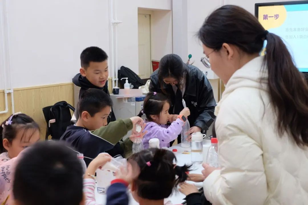 课程从酵母在生活中的妙用展开,通过提问激起小朋友们的兴趣和好奇心。随后,在主讲人的介绍和助教的协助下,小朋友们利用酵母粉、白砂糖、塑料水瓶和气球等材料进行实验,通过对比加酵母粉和未加酵母粉条件下气球的膨胀情况,直观地感受酵母发酵的过程和原理,并尝试在科学探究实验中运用对照原则和控制变量原则。同时,酵母使气球鼓起来的“力量”能够使人联想到党和国家发展历史上那些鼓舞人心的“力量”,具有爱国教育意义。在讲解和实验的过程中,主讲人还适时提出问题,课堂氛围积极热烈,小朋友们在踊跃回答问题的过程中加深了对实验原理的认识,提升了科学素养和科学探究能力。