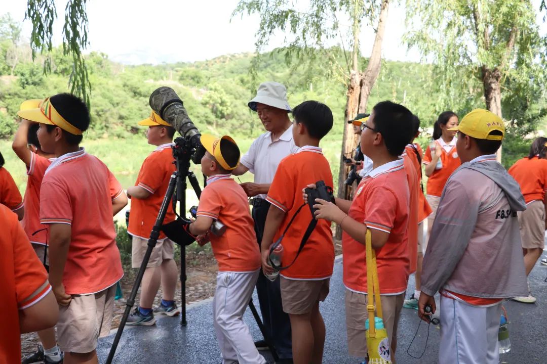 2025年6月5日和6日,在副院长董路教授与密境生态保护中心观鸟老师的带领下,北师大生科院志愿者分两次带领约240名密云一小的学生一起前往密云北庄朱家湾开展观鸟实践课程。一路上,志愿者们充分发挥专业知识,为同学们细心讲解沿途见到的各种鸟类,同学们兴致盎然地观察着周围鸟类的一举一动。在短短的一个多小时中,普通鸬鹚、北红尾鸲、长嘴剑鸻、发冠卷尾等鸟类悉数飞过。同学们在观鸟的亲身实践中,切实体会到密云地区生物资源的丰富。看着这些灵动的鸟儿,同学们深刻意识到,要为这些大自然的精灵们守护好这一方天地,让它们能够长久地在这里繁衍生息。
