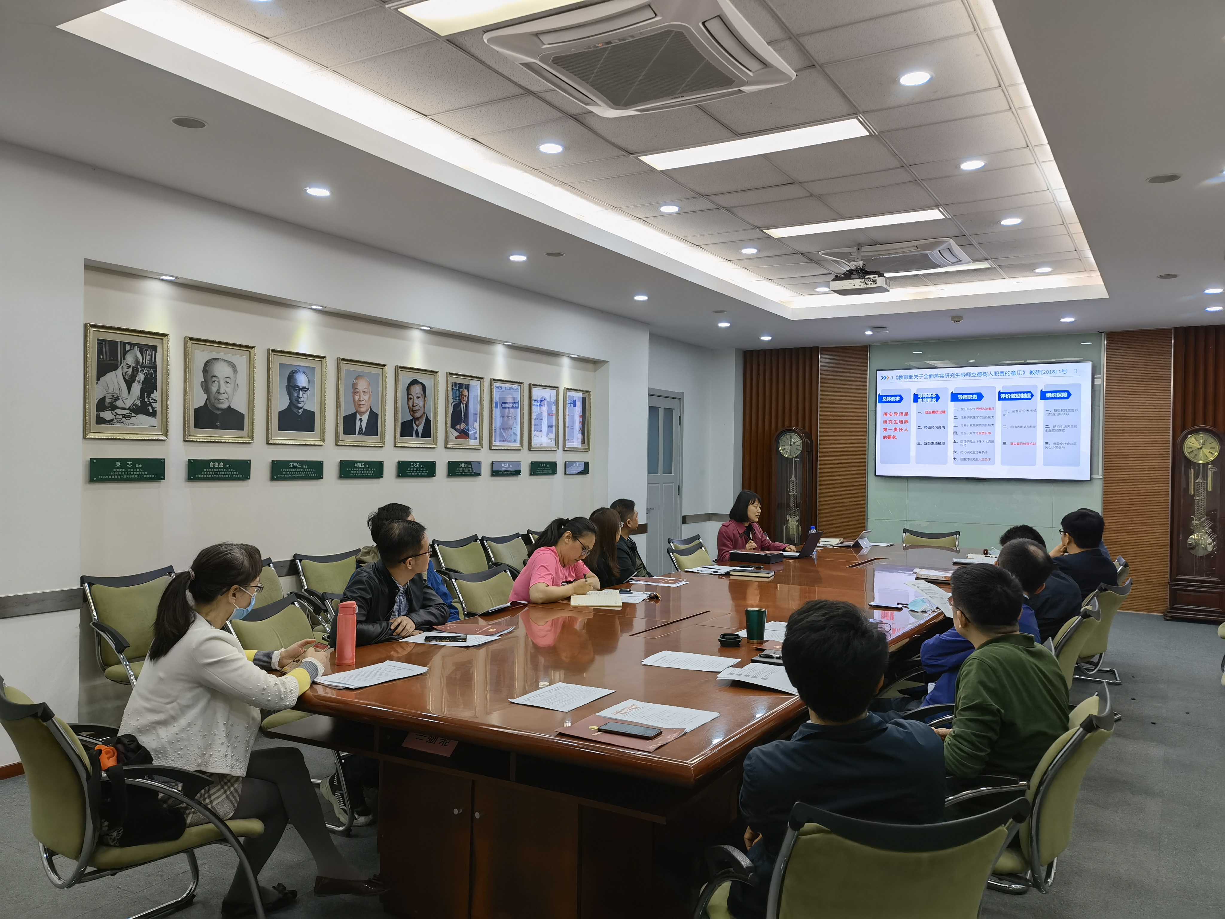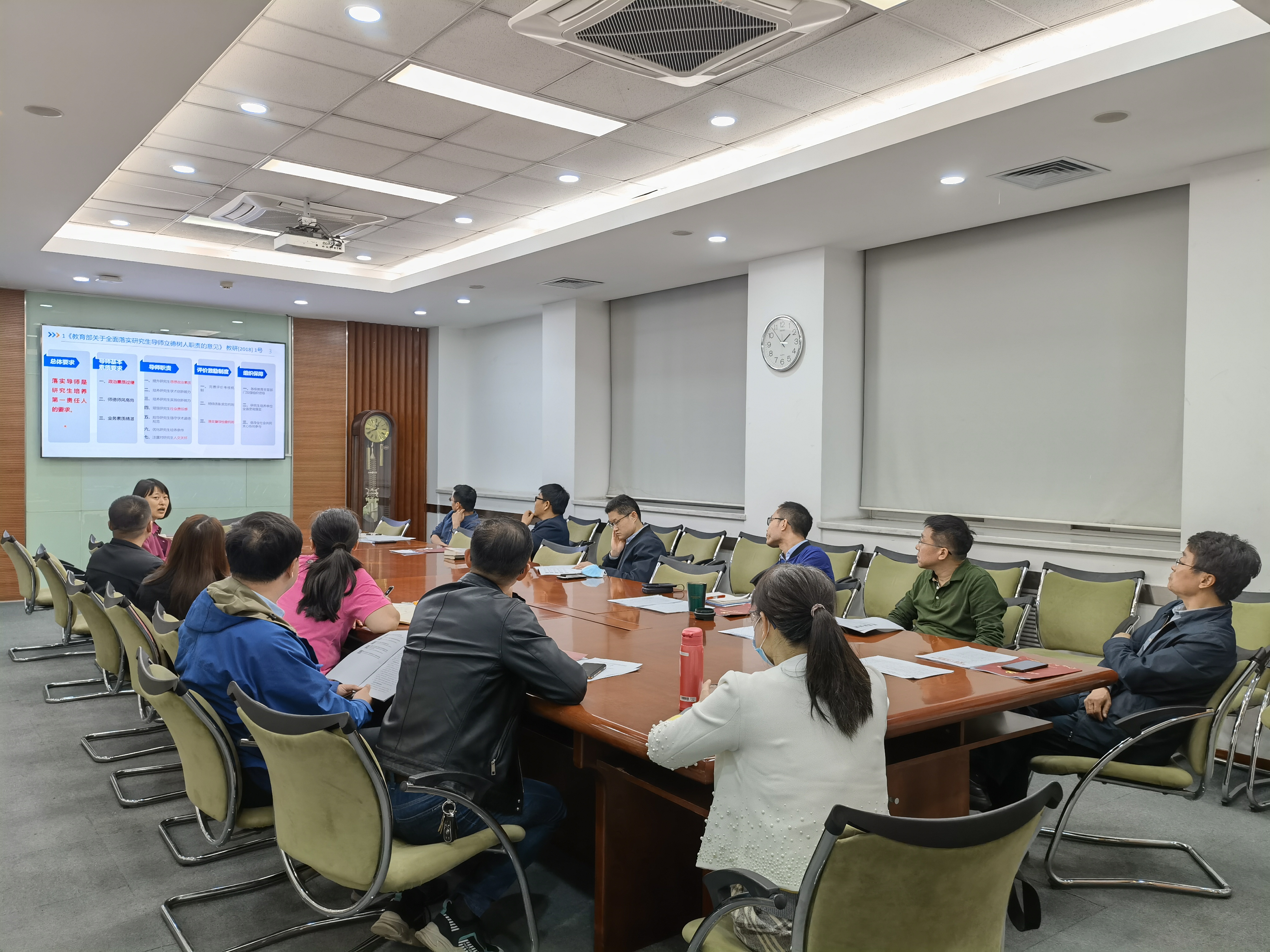 商瑜分享了《教育部关于全面落实研究生导师立德树人职责的意见》《研究生导师指导行为准则》《教育部关于加强博士生导师岗位管理的若干意见》和《教育部关于高校教师师德失范行为处理的指导意见》四个文件的主要内容。