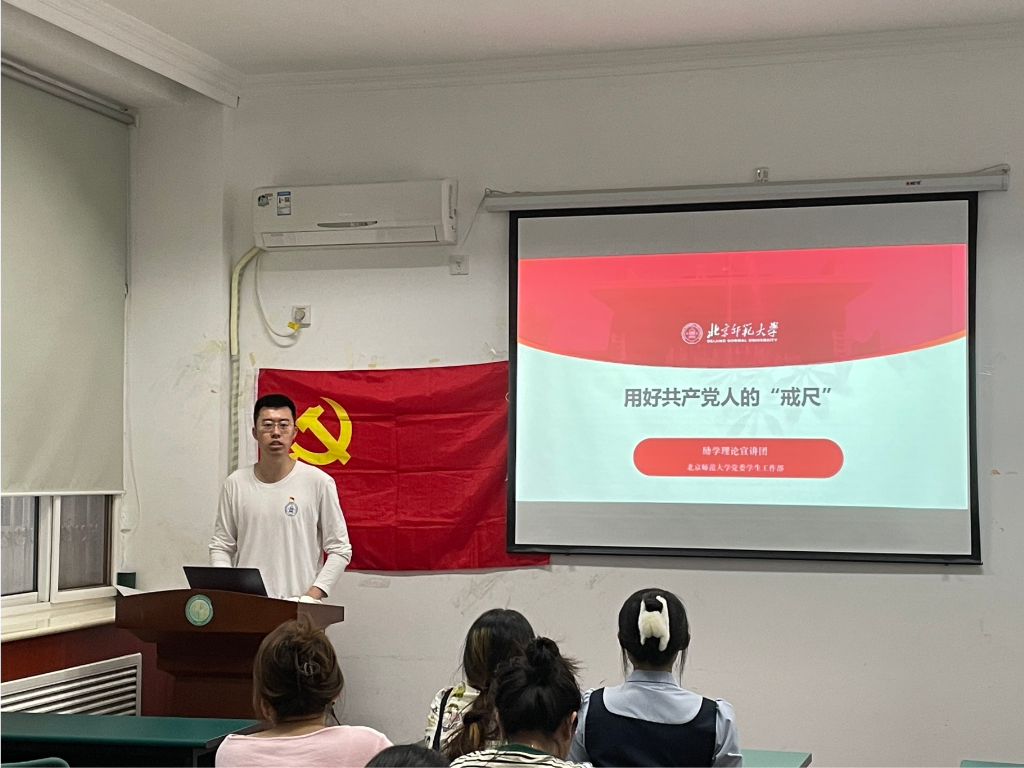 本次集中学习讲座由党委学生工作部励学理论宣讲团联合马克思主义学院求索学社宣讲团主讲。党的十八大以来,习近平总书记在多个场合用“戒尺”这一形象的比喻告诫党员干部要严以律己、勤于自省,遵守党纪国法,始终保持共产党人的政治本色。纪律是管党治党的“戒尺”,也是党员、干部约束自身行为的标准和遵循,“戒尺”在手更要在心。本次讲座从总书记强调的“戒尺”、把握群众纪律“戒尺”、“戒尺”在手更在心三个部分来介绍相关知识,与立身党支部的各位同志共同分享、交流学习党纪党规的心得。