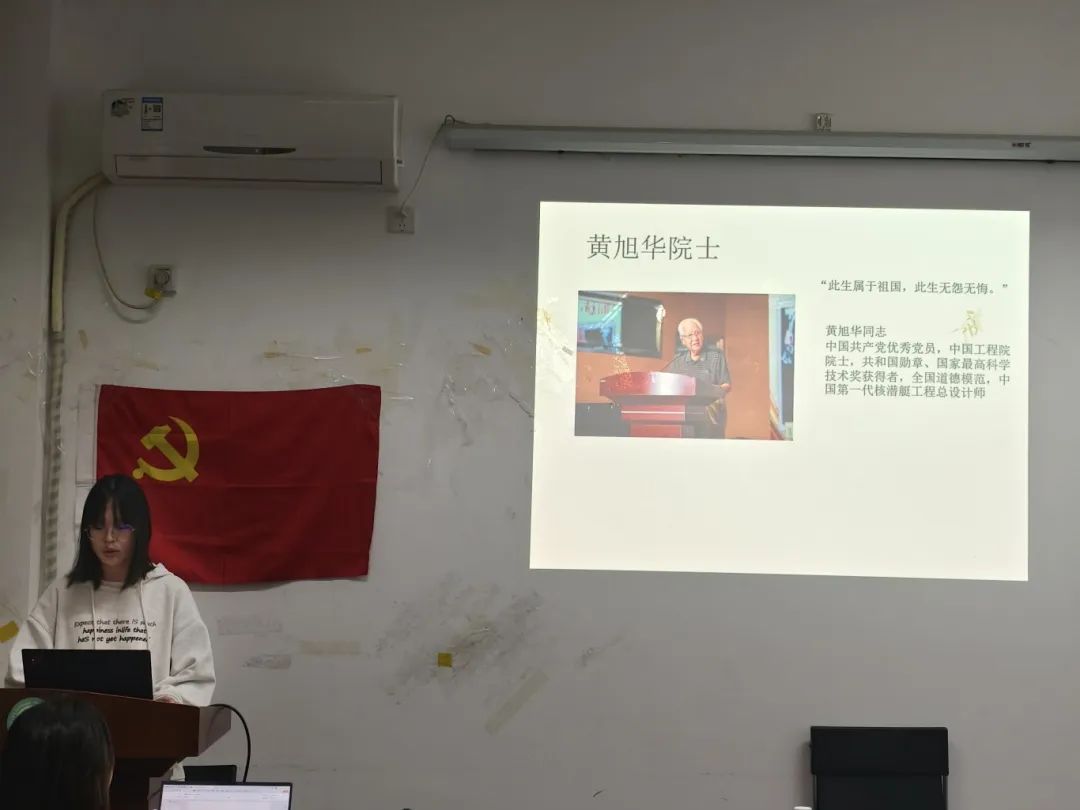 2025年2月26日晚,立身党支部原楚妍同志于生地楼129开展第十一期“立身说”分享活动。原楚妍同志以“隐功埋名三十载,终生报国不言悔”为主题,深情讲述了“共和国勋章”获得者、“中国核潜艇之父”黄旭华院士的感人事迹。