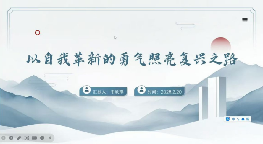 韦欣琪同志以“以自我革新的勇气照亮复兴之路”为主题,开启历史与现实交织的探索之旅。从苏联模式的局限到改革开放的伟大突破,邓小平“黑猫白猫论”为改革开放注入强大思想活力;华为在芯片断供困境下,凭借“向下扎到根,向上捅破天”的战略实现产业链重塑。面对美国技术围堵,中国科技企业积极自主创新,国产大模型“深度求索(DeepSeek)”以1/10算力实现同等智能水平。韦欣琪同志强调,青年应树立动态革新理念,在科技与文化领域勇于创新,传承革新精神,为民族复兴贡献青春力量。