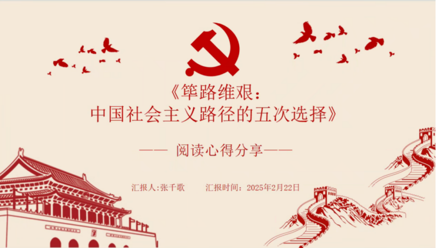 《筚路维艰:中国社会主义路径的五次选择》不仅是一部历史著作,更是一部思想性极强的作品。对这本书的研读能够帮助支部同志们深化对党史和社会主义发展史的理解,增强理论素养和政治觉悟,培养历史思维和辩证分析能力并坚定理想信念,增强使命感。