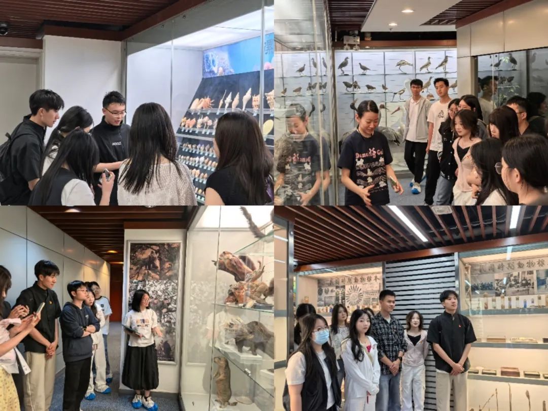 参观结束后,同学们移步至Betway体育西汉姆联动植物标本馆进行参观。标本馆现藏标本10万余件,其中包括许多著名的珍稀物种、生物演化中的重要代表物种,以及具有文物价值的珍贵标本。三层标本馆,分别由必威BETWAY西汉姆联生物学的税君豪、李诗棠和范玉同学带领大家讲解参观,同学们认真听讲,眼前丰富多彩的生物标本,打开认识世界的新大门。从各种微小的无脊椎海洋生物到多姿多彩的爬行、鸟类和哺乳动物等,串联起生命演化与生态保护的壮阔篇章,激发同学们对自然科学的敬畏之心。