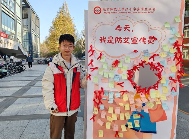在“你比画我猜”的游戏中,志愿者们巧妙地引导大家,用肢体语言和描述来猜测与艾滋病相关的词汇。他们的默契和表达能力在志愿者的鼓励下得到了充分地展现,而志愿者们则在一旁耐心指导,确保游戏的顺利进行。在“便利贴祝福”环节,志愿者们亲手教授大家如何制作红丝带,帮助他们将温暖的祝福贴在展板上,每一张便利贴都承载着对艾滋病患者的深切关怀。