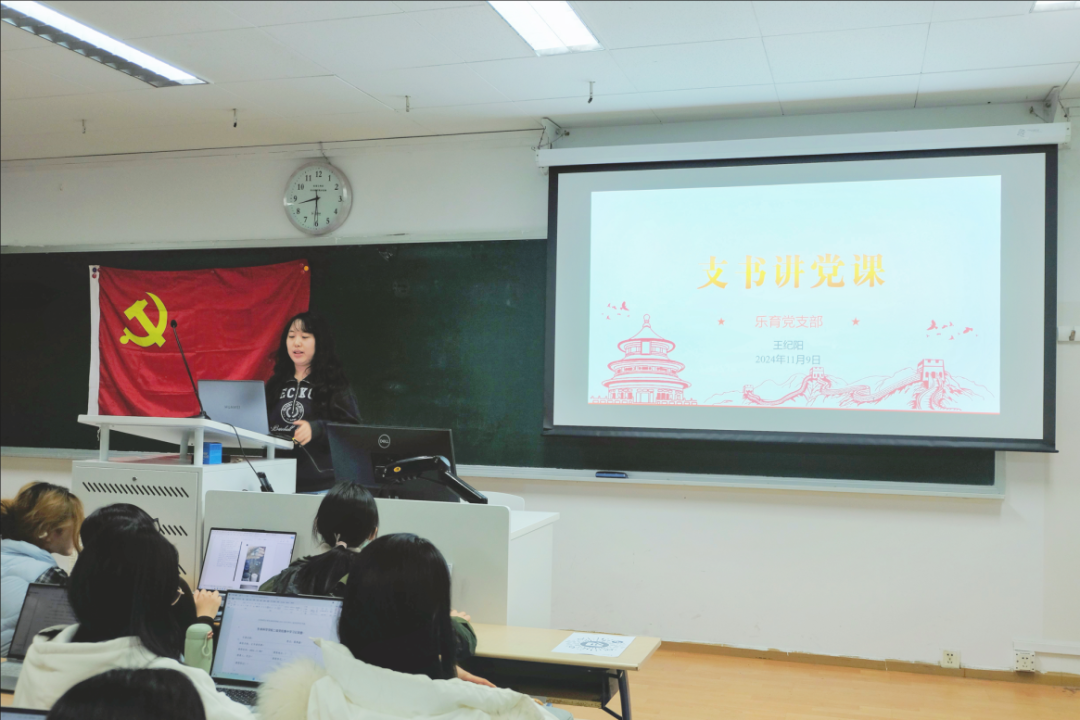 2024年11月9日晚20:30,乐育党支部于艺术楼501教室顺利开展支书讲党课活动。本次会议由乐育党支部书记王纪阳同志主持,主要分为“党员发展培养介绍”和“《推动新质生产力发展的教师教育新方案》主题党课”两部分。
