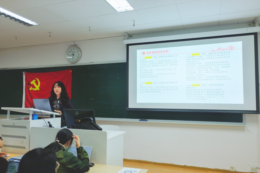 王纪阳同志对党员发展流程、发展对象评选、二级党校修读的总体框架和具体细节进行了重申。王纪阳同志额外强调,思想汇报应真实反映自己的理论学习内容,考察表中填写的所有主要社会关系和家庭成员都需要函调,档案会伴随升学就业、升职、人事调动,每位同志都应认真对待。