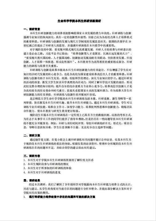 为了解本科生科研及实验需求,励学党支部于2023年10月开展了本科生科研训练调研,于2024年3月开展了本科生对于实验课的需求与意见调查,通过问卷调查、交流讨论,从学生角度分析当前存在的问题、困惑,并提出一些解决方案。最终结果形成文档。