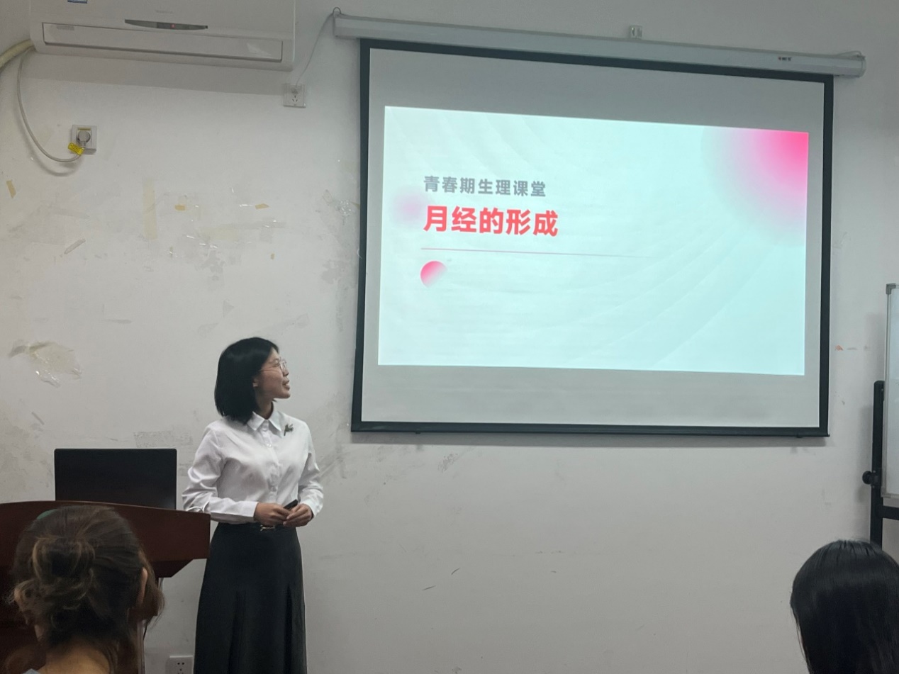 朱晓菲同志试讲的主题是《青春期生理课堂——月经的形成》,是一节以小升初学生为面向对象的科普课程。该课程以女性生理现象作为导入,围绕月经的产生、月经出血量、痛经等方面展开授课,最后通过制作课后作业的形式引发学生思考。总体展现了良好的教姿教态。