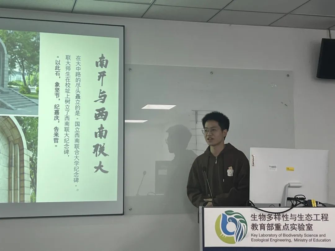 活动第二项,支部邀请本科就读于南开大学的禹英渤同志分享南开与西南联大的密切联系及光辉历程。