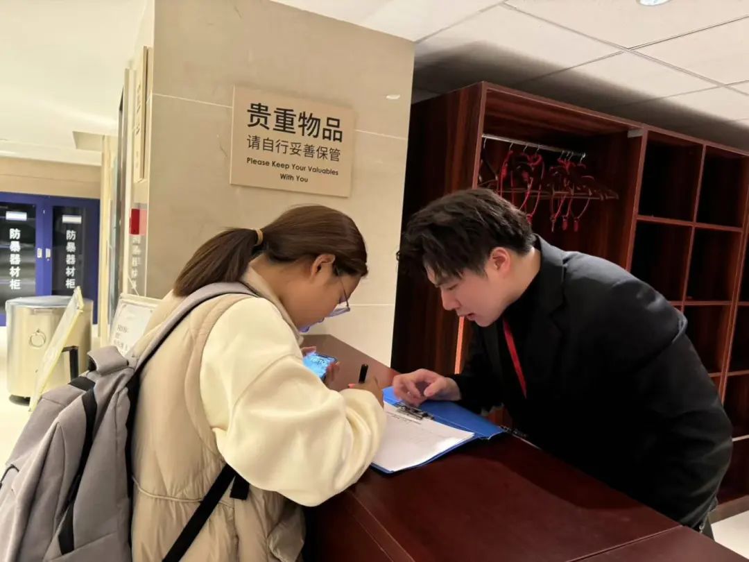 景川蓉:我的工作岗位是二楼寄存处,主要负责观众的行李寄存和登记工作。当我满怀热情,为需要寄存的观众有序地寄存并看管行李,我感觉十分开心。这里没人的时候很安静,除了寄存的人外,只有少数路过的人。但偶尔我也会遇见一两个很有趣的人,他们会和我聊上几句,其中不乏有外国朋友、戏曲研究者等类型的人。通过和他们交流,我对《牡丹亭》的故事也有了更深入的了解。本次志愿活动在一定程度上拓宽了我的视野,锻炼了我的沟通能力。我深刻体会到,当我选择全心地投入时,志愿活动意义便自然而然地具象化了。它不仅仅是一项服务工作,更是一次心灵的交流和思想的传递。