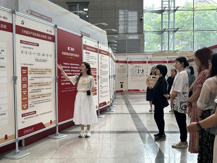 在讲解员老师的引导下,党支部同志们详细学习了各部分内容及相关典型案例。通过对展览内容的学习,大家加深了对《条例》重点内容的理解,深刻领会了习近平总书记关于党的自我革命的重要思想。参观过程中,党支部同志们积极结合自身工作和生活实际并讨论具体案例,现场学习氛围浓厚。