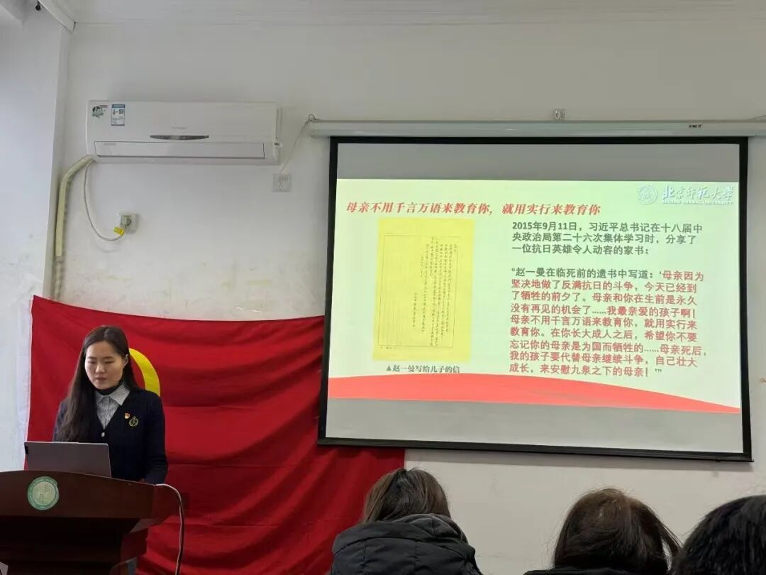 景川蓉:本次宣讲沿着历史脉络,系统阐释了中国共产党在抗日战争中的中流砥柱作用;又以邓玉芬、赵一曼、刘老庄连的英雄故事为镜,照见今日岁月静好背后的惨痛代价。历史时刻提醒我们,和平不是天赐的礼物,而是每一名中华儿女将命运紧紧相连,用脊梁和热血共同托举的蓝天。作为新时代青年,我们应当铭记历史,从中汲取不屈的精神力量与深刻的历史启示,将个人奋斗融入国家发展的浪潮中,为守护来之不易的和平与实现民族复兴贡献青春力量。