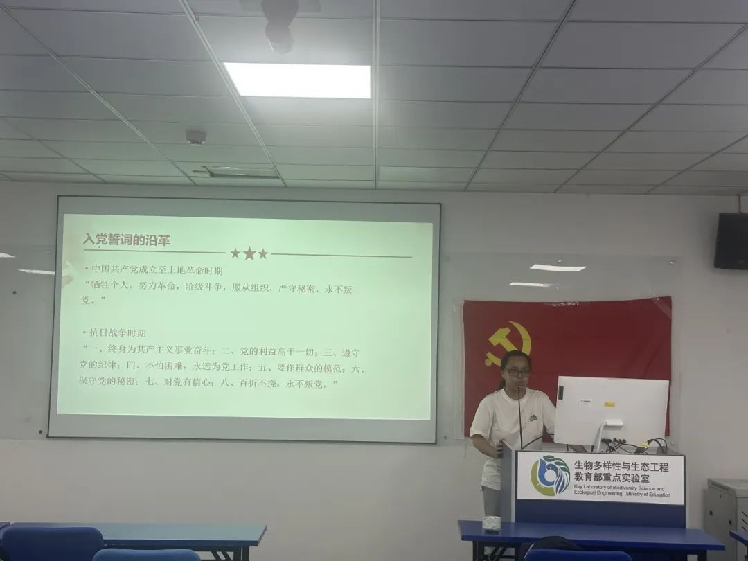 在支书讲党课部分,支部书记刘梦嘉同志深入浅出地讲解了入党誓词的沿革。从革命战争年代强调“永不叛党”、“为共产主义奋斗终身”,到新中国建设和改革时期突出“积极工作”、“执行党的决定”、“对党忠诚”,再到新时代强调“履行党员义务”、“严守党的纪律”、“保守党的秘密”,誓词的演变清晰刻录了党在不同历史阶段的中心工作和奋斗目标,是党领导人民进行伟大斗争、建设伟大工程、推进伟大事业、实现伟大梦想的生动写照。