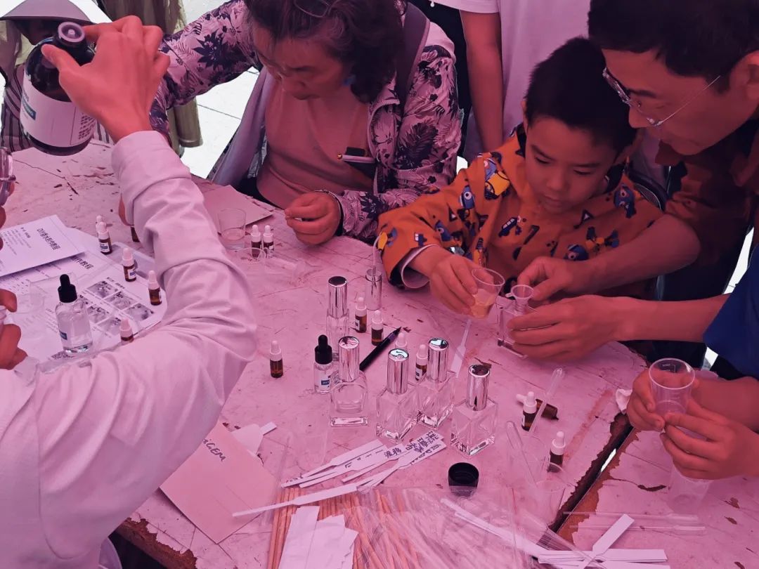 在“生物香氛创制体验”活动中,团队提供了多种植物香水原料。同学们自由调配,创造出独一无二的香水,为它命名并记录在专属香卡上,将这份独特的嗅觉记忆带走。