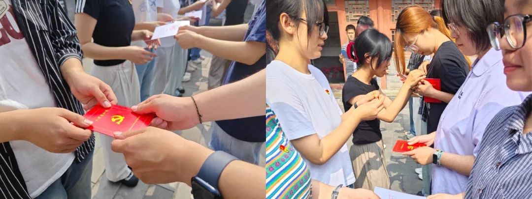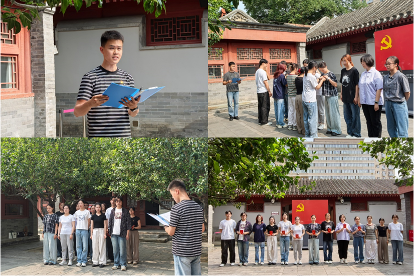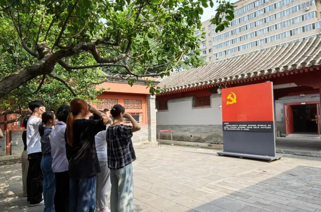 为贯彻落实“深入贯彻中央八项规定精神学习教育”部署计划,感悟革命年代艰苦奋斗精神。2025年6月29日,在七一建党节到来之际,笃行党支部组织党员们前往北京李大钊故居参观学习,通过参观李大钊同志生平事迹,感悟中国共产党成立的艰辛与不易。同时,笃行党支部联合立身党支部和励学党支部,在李大钊同志庭院为新发展党员举行入党宣誓仪式,以示对他们获得的党员身份的庄严认可。