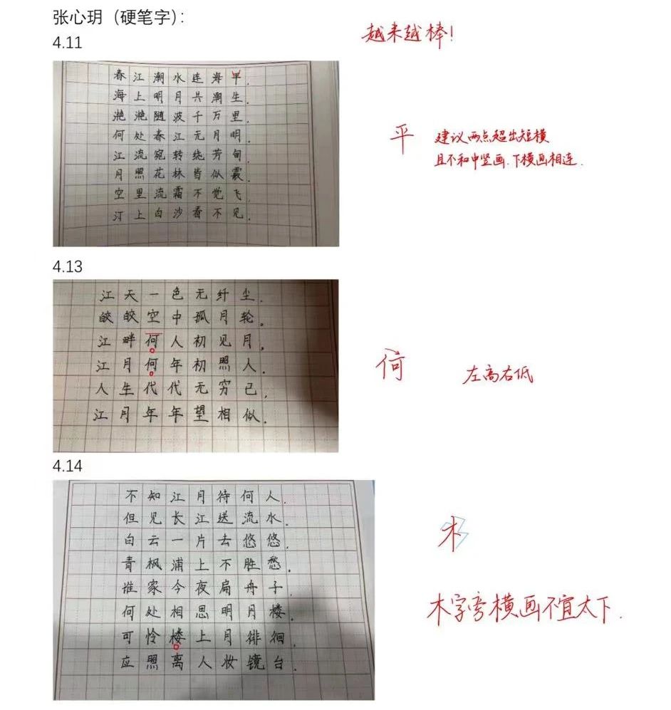 同学们在打卡群内积极参与每日练字打卡,相互观摩学习。导师们在每日作品中进行批注和打分,帮助同学们纠正字体字形,大家的书写能力不断进步。