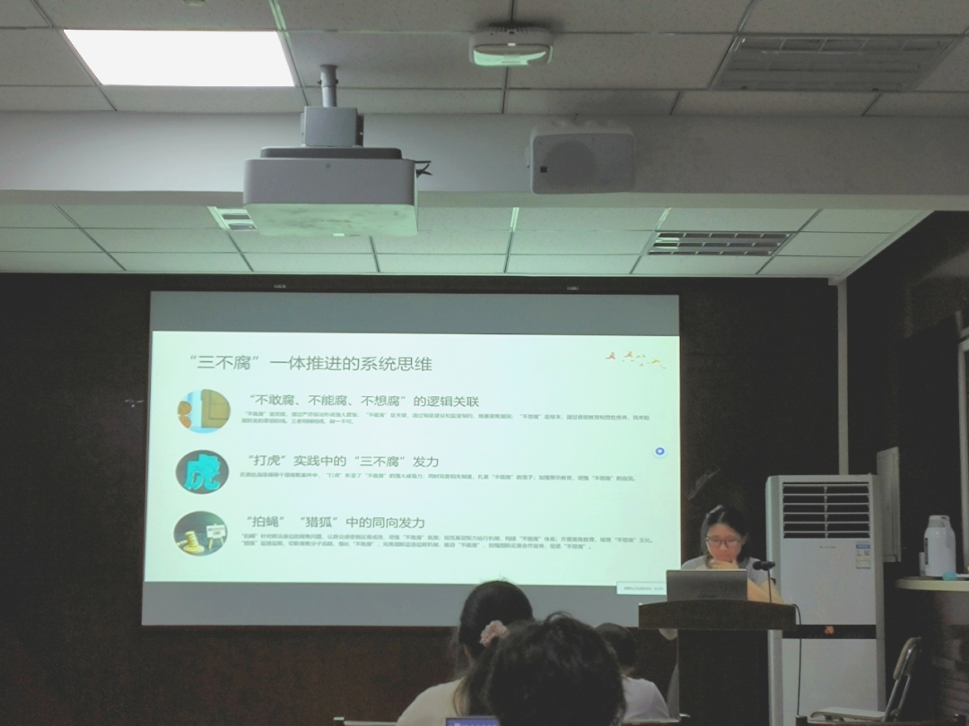 其次,陈佳佳同志说明其中核心观点与理论创新,强调政治建设的统领地位、“两个维护”“政治三力”等重要理念以及“三不腐”一体推进的系统思维,深刻阐释了反腐败斗争的科学路径。