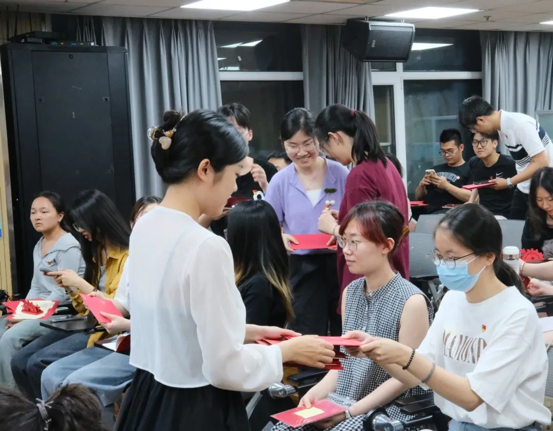 活动第一项,送上专属礼物。由支书支委为各位党员发放政治生日贺卡,并邀请6月份入党的同志发表感想。满满的仪式感和暖心的祝福勾起大家深情回忆自提交入党申请书以来的点滴历程:有对自己一路成长的欣喜,有对支部和同志们的感激,也有更上一层楼的自省鞭策。