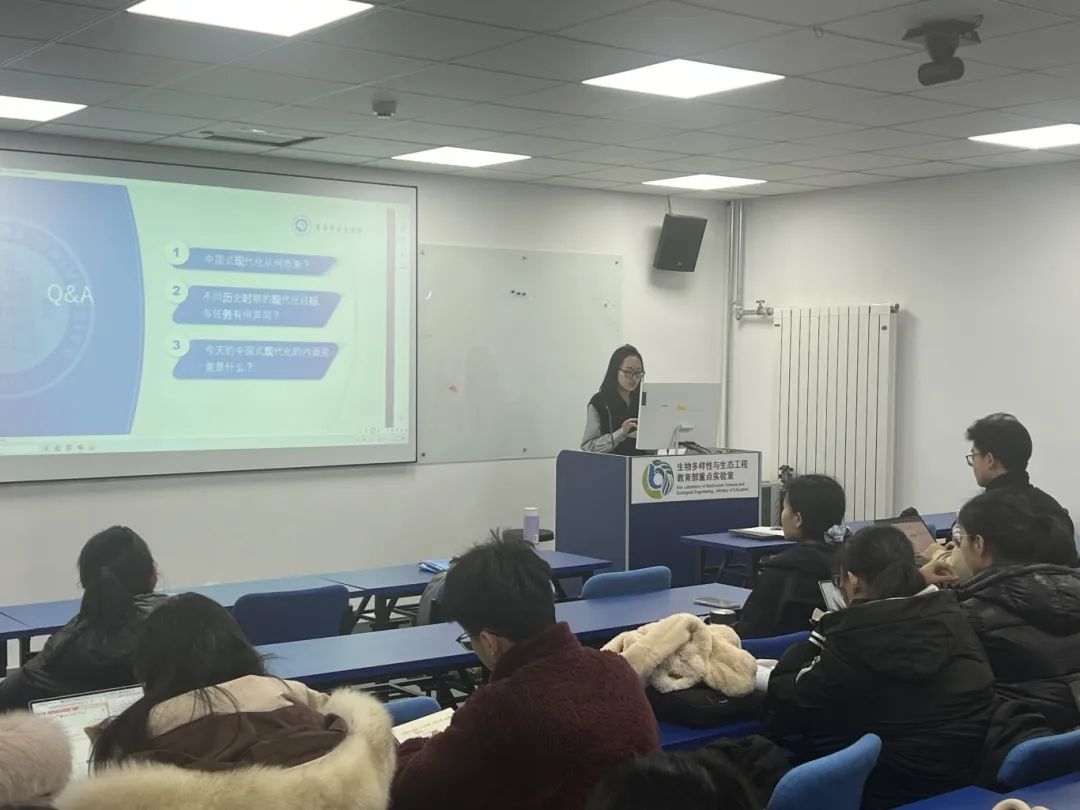 随后,求索学社宣讲团张可莹同志进行《人间正道是沧桑——带你走进中国式现代化的”前世今生”》主题宣讲。她深入剖析了中国式现代化的五大特征和九个方面的本质要求,并且从历史内涵、理论创新、重要特征和世界意义四个方面系统地阐述了中国式现代化的理论体系。