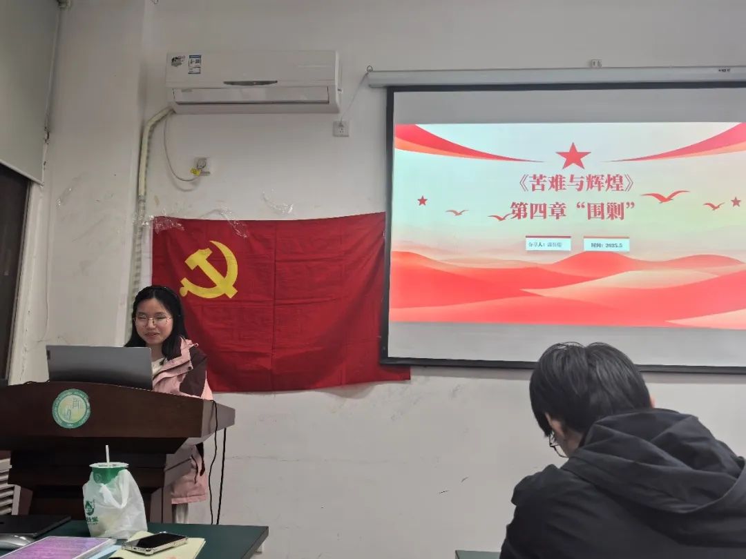 最后,在四个党小组分享完后,支部组织成员们自由交流分享。大家都积极与身边的同志交流自己的感悟感想。大家一致认为,《苦难辉煌》没有教科书的生硬,却有教科书的准确;没有纯史料的枯燥,却有着真实历史的感人,从书中看到了新时代的我们也应拥有的、正面积极的元素。同时书中多次出现了国内其他势力以及国际势力的视角,也为我们审视当今时代的政治局势提供了新的观点。无论从历史还是从政治角度,《苦难辉煌》都值得我们反复品读。