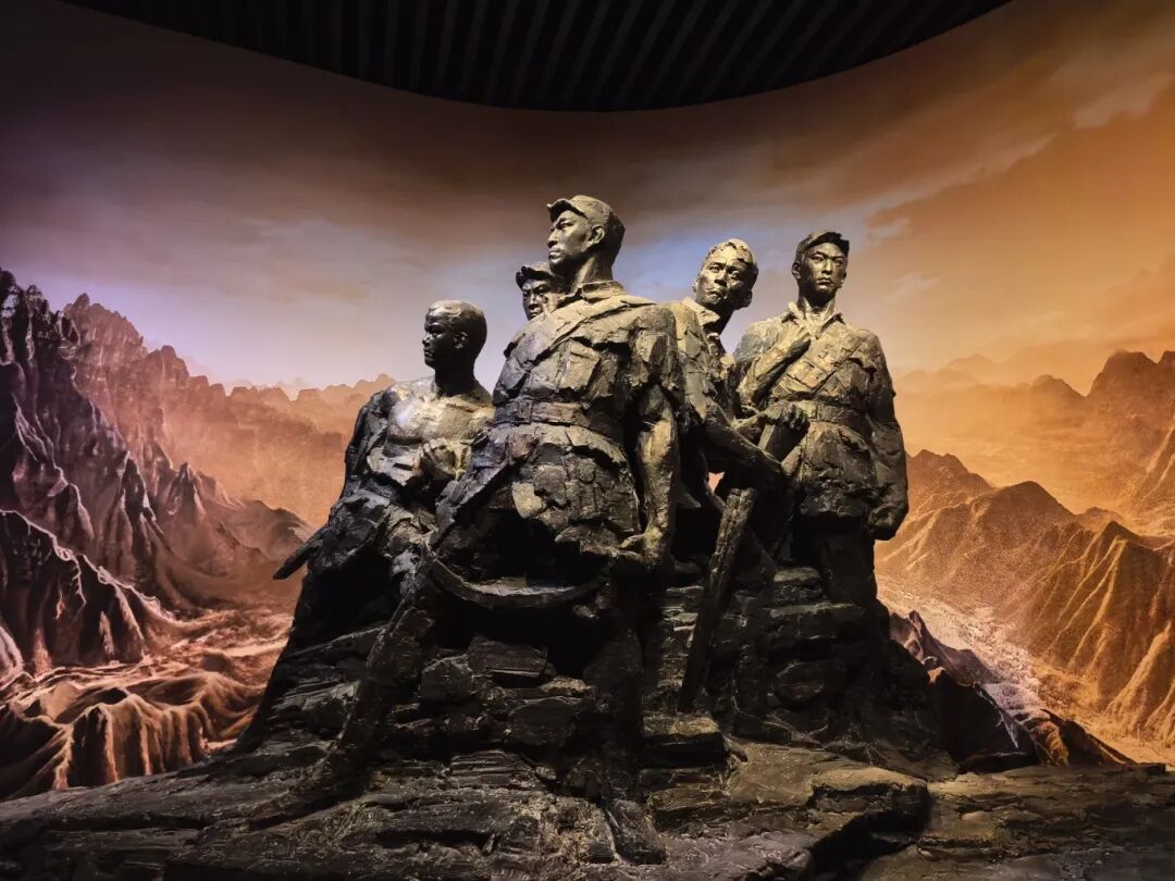 在庄严肃穆的中国人民抗日战争纪念馆内,狼牙山五壮士的雕塑巍然屹立——五位八路军战士的身影与苍劲的山峦融为一体,他们目光坚毅,望向远方,穿越八十余年的时空,与我们进行着一场关于信仰与牺牲的无声对话……