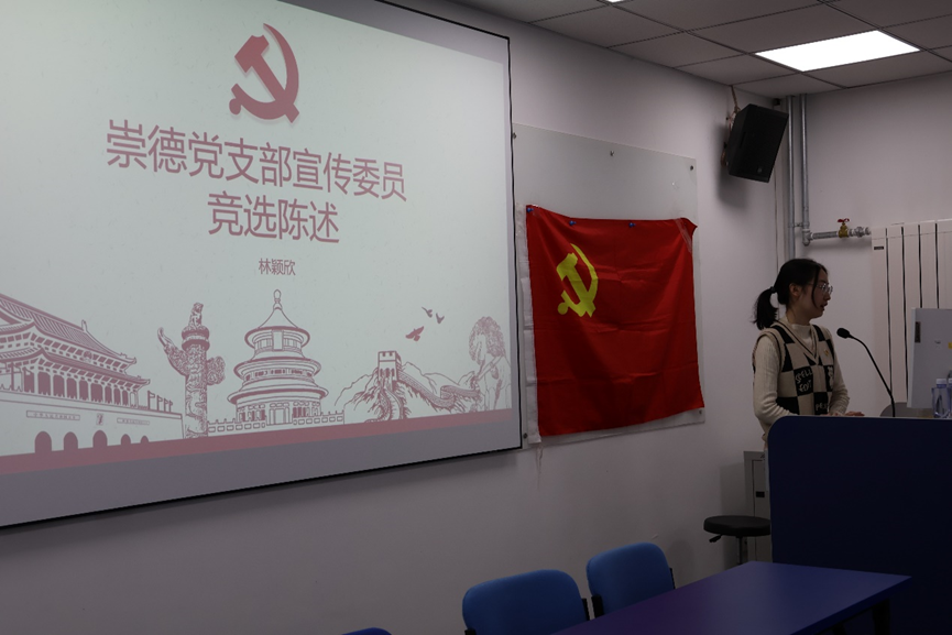 会议第四项,无记名投票。到会党员充分酝酿讨论,进行无记名投票表决。经过统计,产生了新一届崇德党支部委员会委员:陈昱臻、王雨彤、林颖欣、王祎璠。