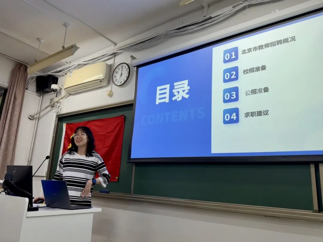 郭星辰师姐主要从北京市教师招聘概况、校招准备、公招准备、求职建议四方面展开讲述。