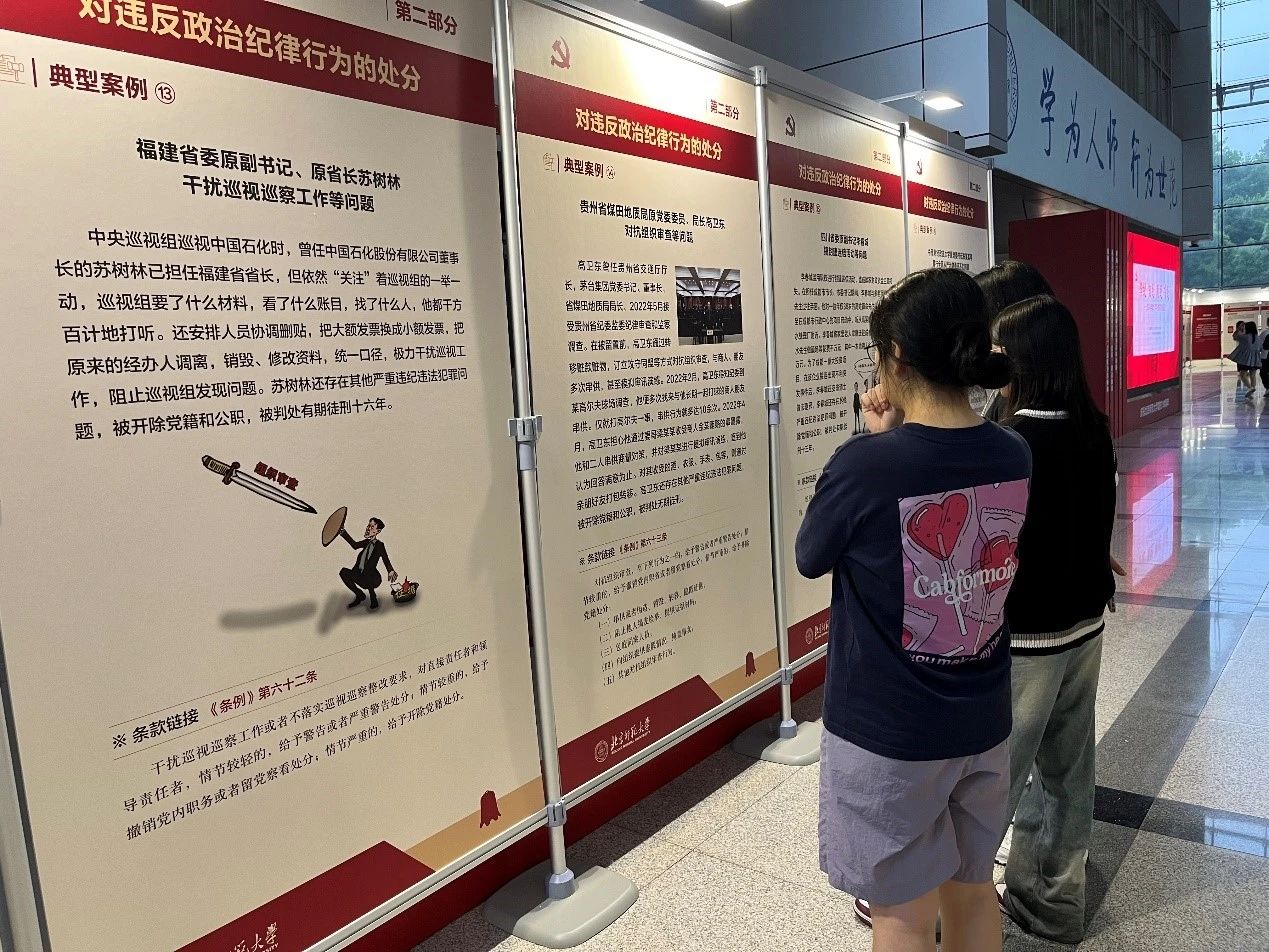 为贯彻落实习近平总书记关于党纪学习教育的重要讲话和重要指示精神,帮助学校广大党员干部师生深化对《中国共产党纪律处分条例》的掌握和理解,按照学校党委有关党纪学习教育工作部署,2024年6月7日,必威BETWAY西汉姆联乐育党支部与教育学部2023级研究生第九党支部共同参观“学纪 知纪 明纪 守纪——2024年党纪学习教育专题展览”。