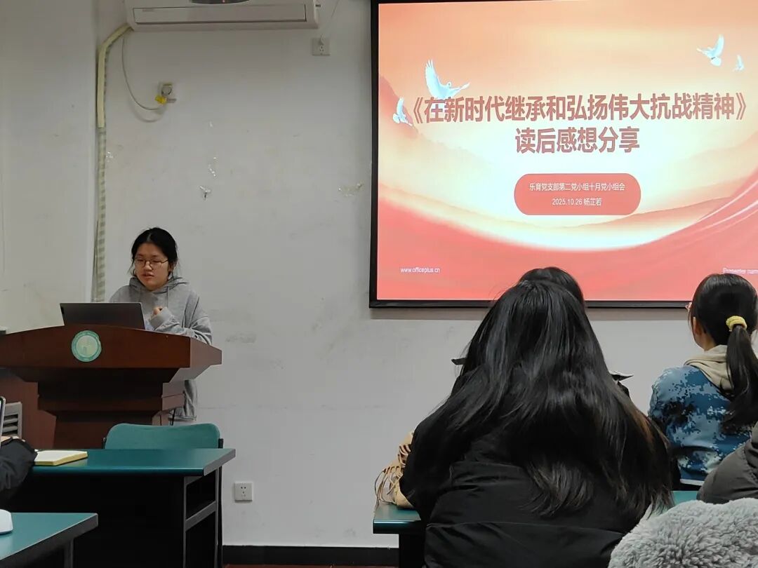 2025年10月26日,乐育党支部第一党小组组织召开了以“抗战精神的时代价值”为主题的集中学习研讨会。