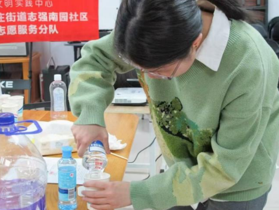 主讲教师以“启发式问答”串联教学环节,通过“洗洁精与盐水如何分工合作”等递进式提问,将专业术语转化为童趣语言等趣味问题,引导孩子们在动手实践中理解科学思维方法。
