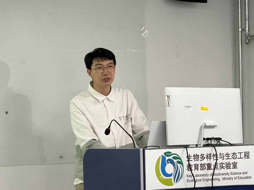 讲座中,谷际岐同学以生态学研究为切入点,从LLMs的基本原理出发,梳理其发展脉络与技术特点,全方位对比主流模型(如GPT、DeepSeek等)的适用场景。并通过理论讲解、案例剖析与实时演示相结合的方式,生动展示了LLMs如何贯穿文献调研、实验设计、数据分析、论文写作与成果传播等科研全流程。